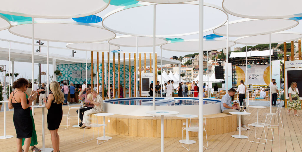 For Cannes Lions 2023, Amazon secured one of the largest footprints at the festival, taking over a 35,000-square-foot lot on the edge of the water, which we transformed to capture the special nexus of water, sun, and wind that the Mediterranean creates.