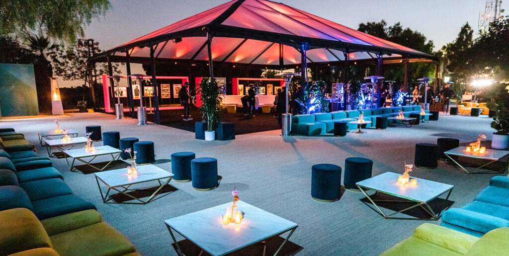 At a peninsula point in Kenneth Hahn Park, we created a custom screening area for 300 guests, perfectly situated to frame Baldwin Hills and the magnificent skyline of downtown L.A.