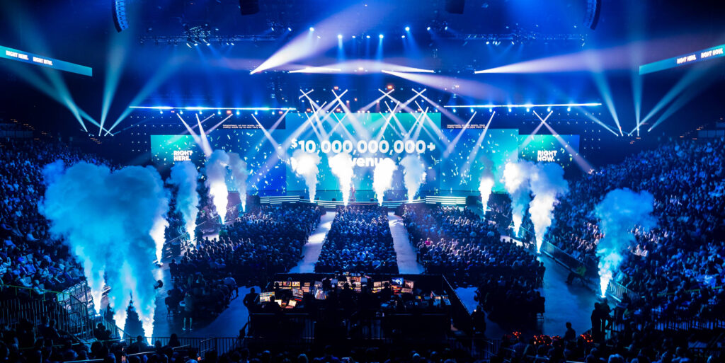 Live at the MGM Grand Garden Arena in Las Vegas, Salt produced the ServiceNow Sales Kickoff, a flagship internal event attended by over 10,000. The stage design was anchored by a massive LED wall, flanked by layered LED screens that added depth, dynamic content, and, of course, IMAG. The show mixed business with spectacle: fire effects, dancers, and even a Formula 1 car making its way onto the stage gave speakers unforgettable moments in the spotlight. After days of powerful programming, the stage closed with a bang, hosting a packed-house performance by the legendary band Train.