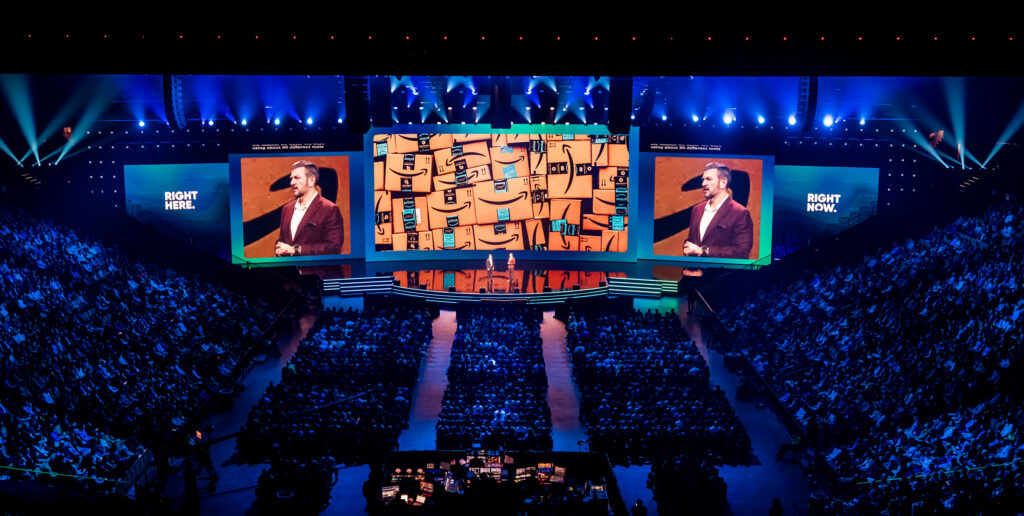 We led the design and execution of the keynote experience, crafting impactful visual storytelling and seamless production that brought ServiceNow’s vision to life on stage. From concept development to stage design, motion graphics, and show production, we ensured every element of the keynote supported ServiceNow’s message and resonated with its global audience.
